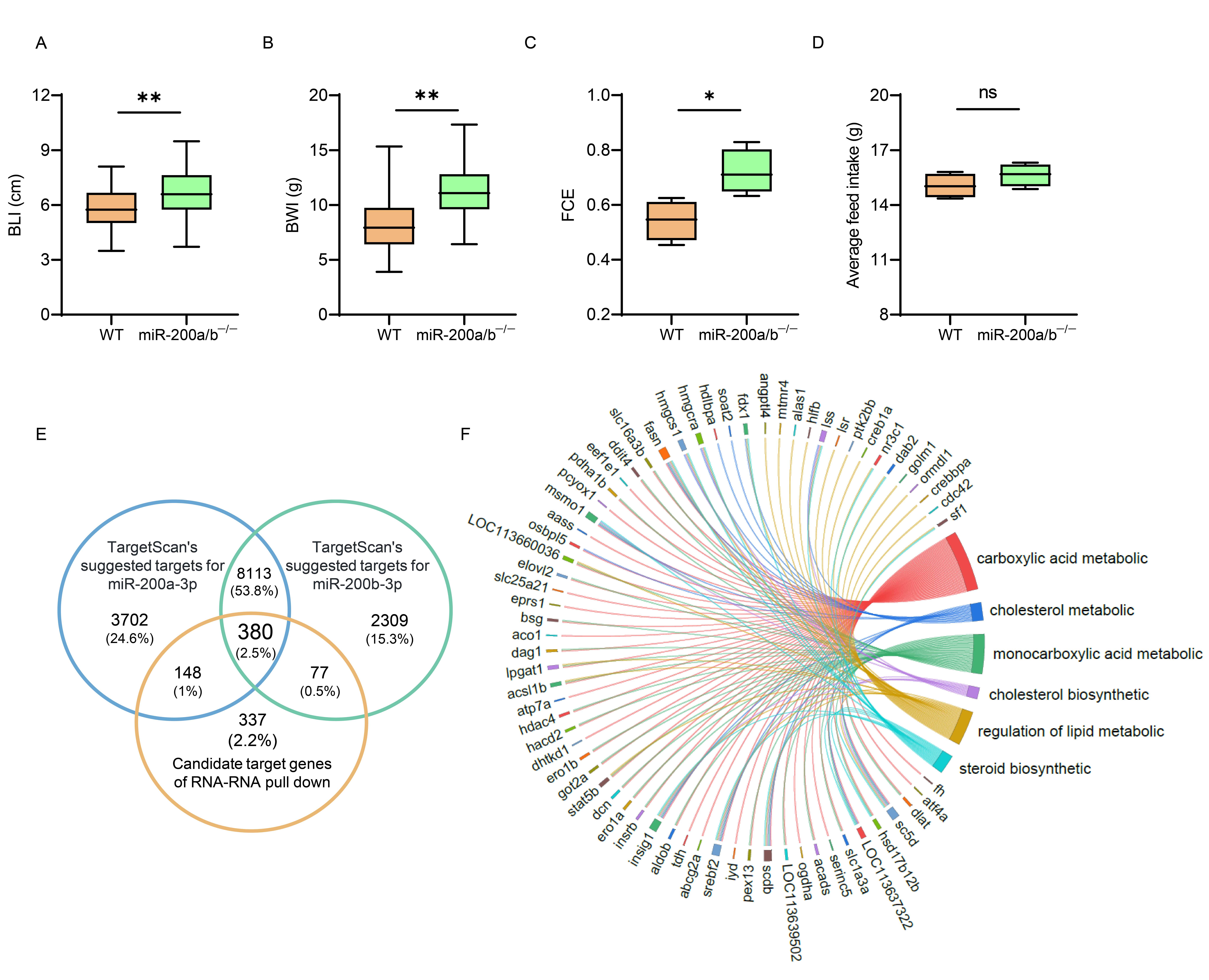 图2 miR-200a/200b缺失提升黄颡鱼生长和饲料转化率及相关分子机制